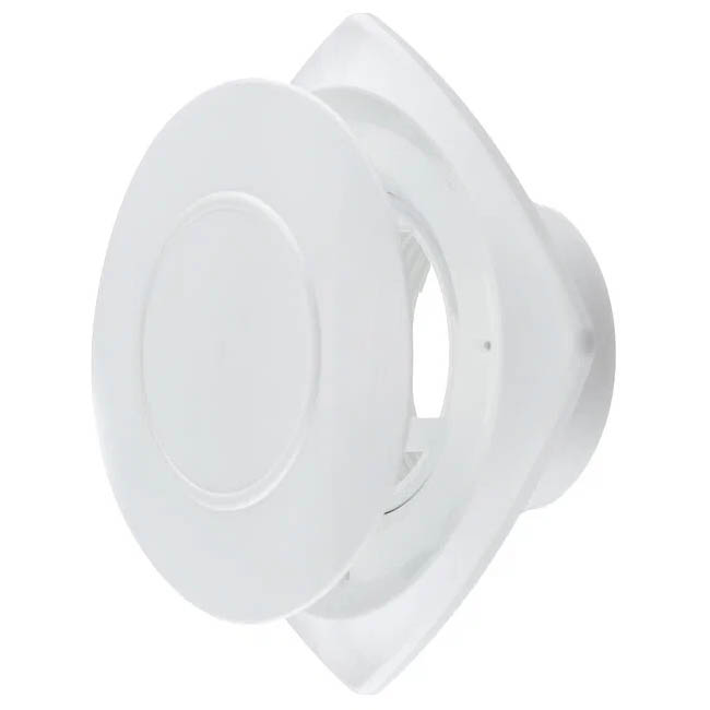 вытяжной анемостат, материал: пластик, форма: круглый, тип установки: настенный/потолочный, управление: механическое, присоединительная муфта, диаметр воздуховода: 125 мм