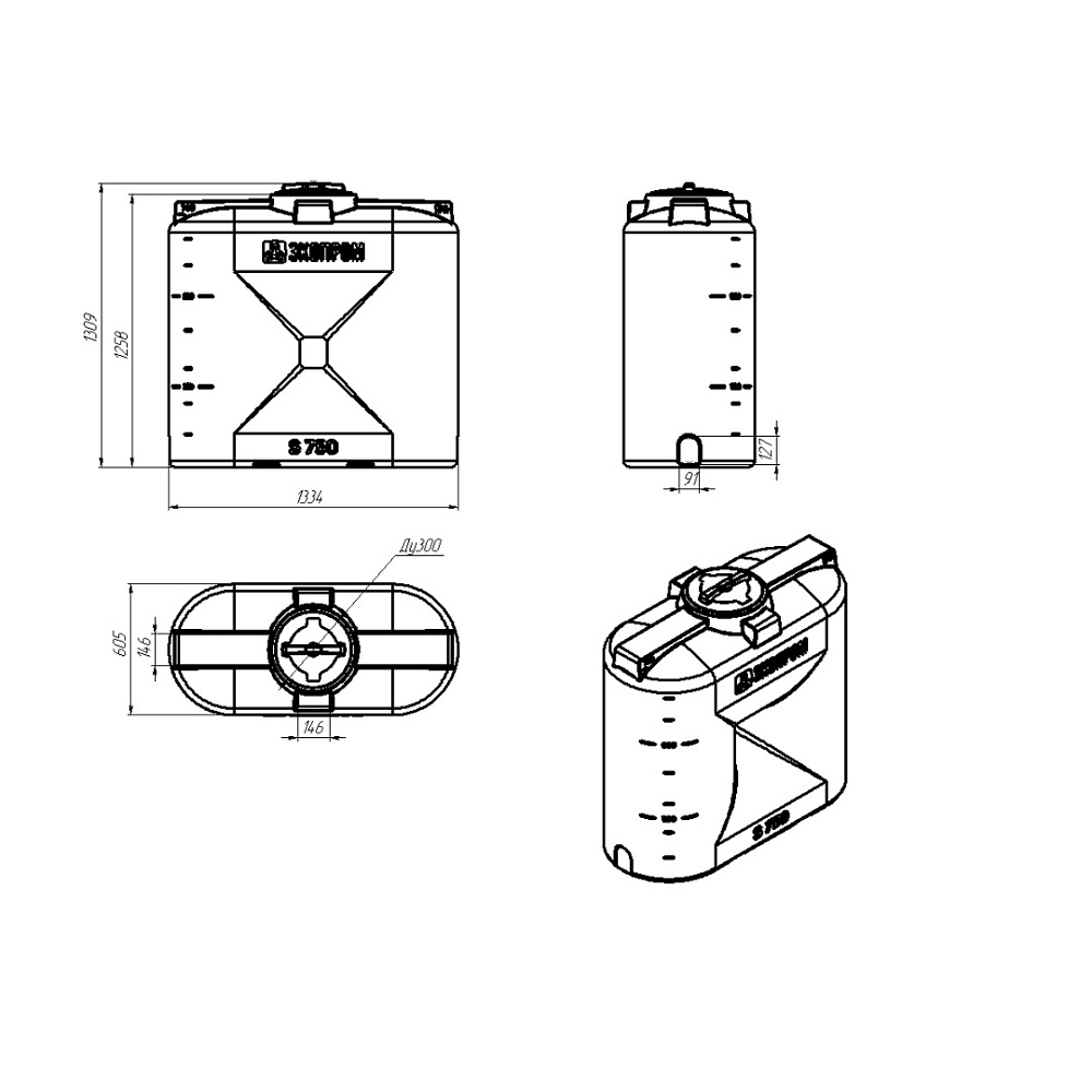 емкость, для воды / для дизельного топлива, тип эксплуатации: наземная, расположение: вертикальное, тип крышки: резьбовая, плотность вещества макс.: 1 г/куб. см, объем 750 л