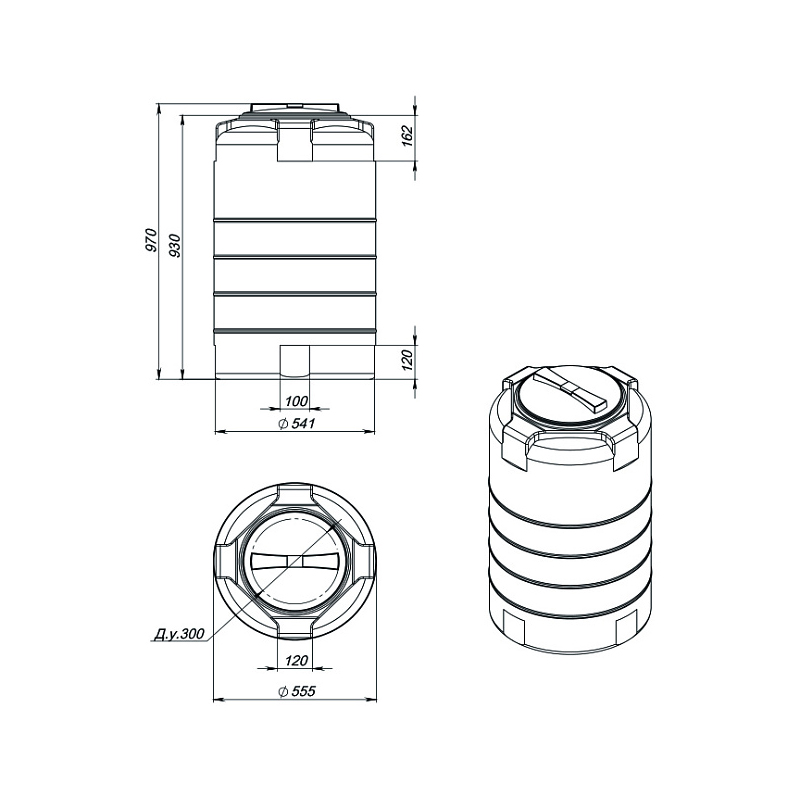 емкость, для воды / для дизельного топлива, форма емкости: цилиндрическая, тип эксплуатации: наземная, расположение: вертикальное, тип крышки: резьбовая, плотность вещества макс.: 1,2 г/куб. см, объем 200 л