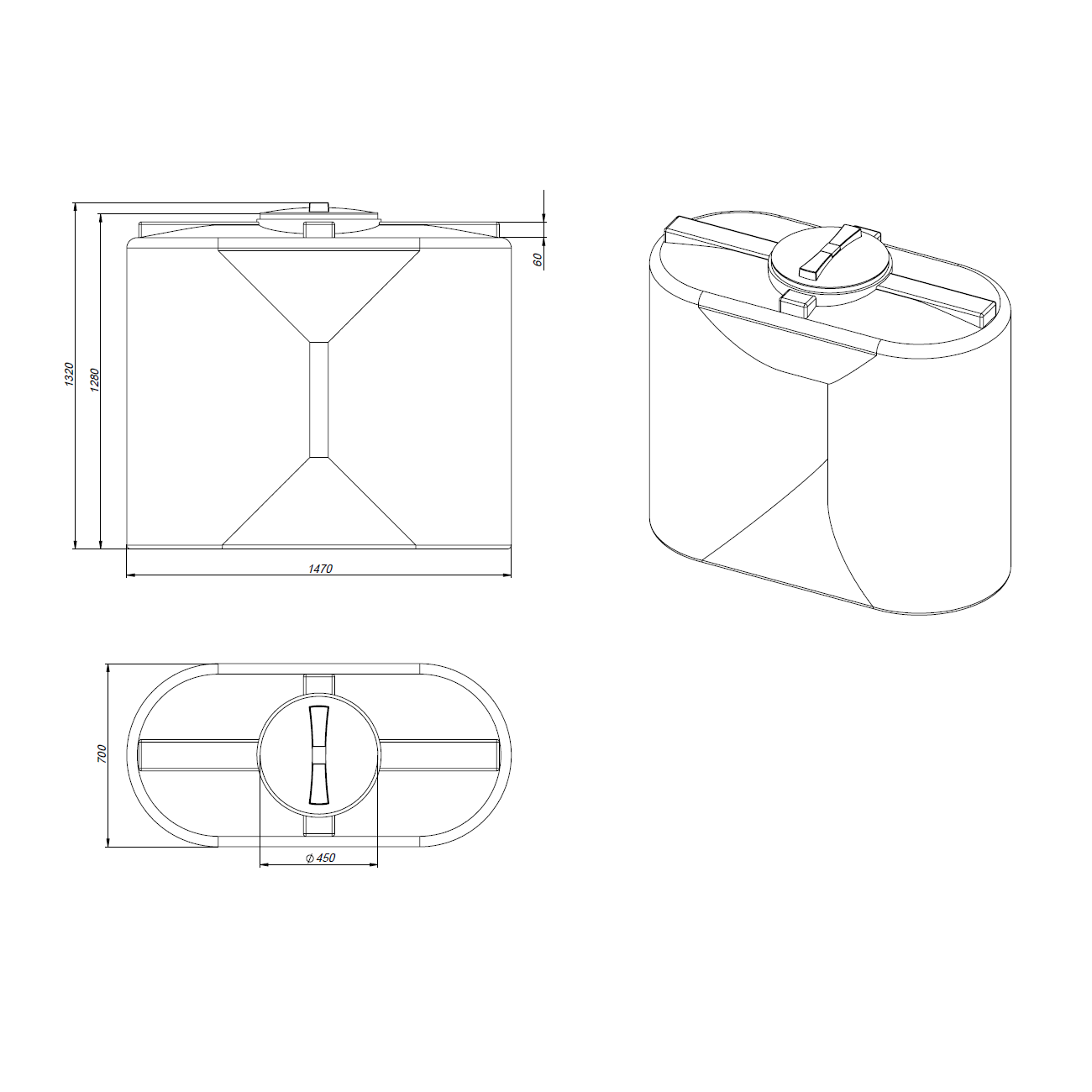 емкость, объем: 1 000 л, форма емкости: прямоугольная, тип эксплуатации: наземная, расположение: вертикальное, диаметр горловины: 45 см, материал: полиэтилен
