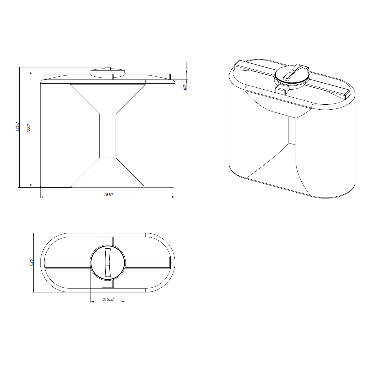 емкость, объем: 750 л, форма емкости: прямоугольная, тип эксплуатации: наземная, расположение: вертикальное, диаметр горловины: 35 см, материал: полиэтилен