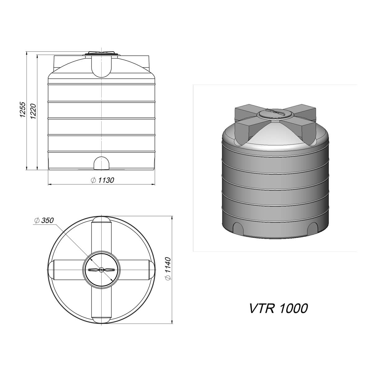 емкость, объем: 1 000 л, форма емкости: цилиндрическая, тип эксплуатации: наземная, расположение: вертикальное, диаметр горловины: 30-40 см, материал: полиэтилен