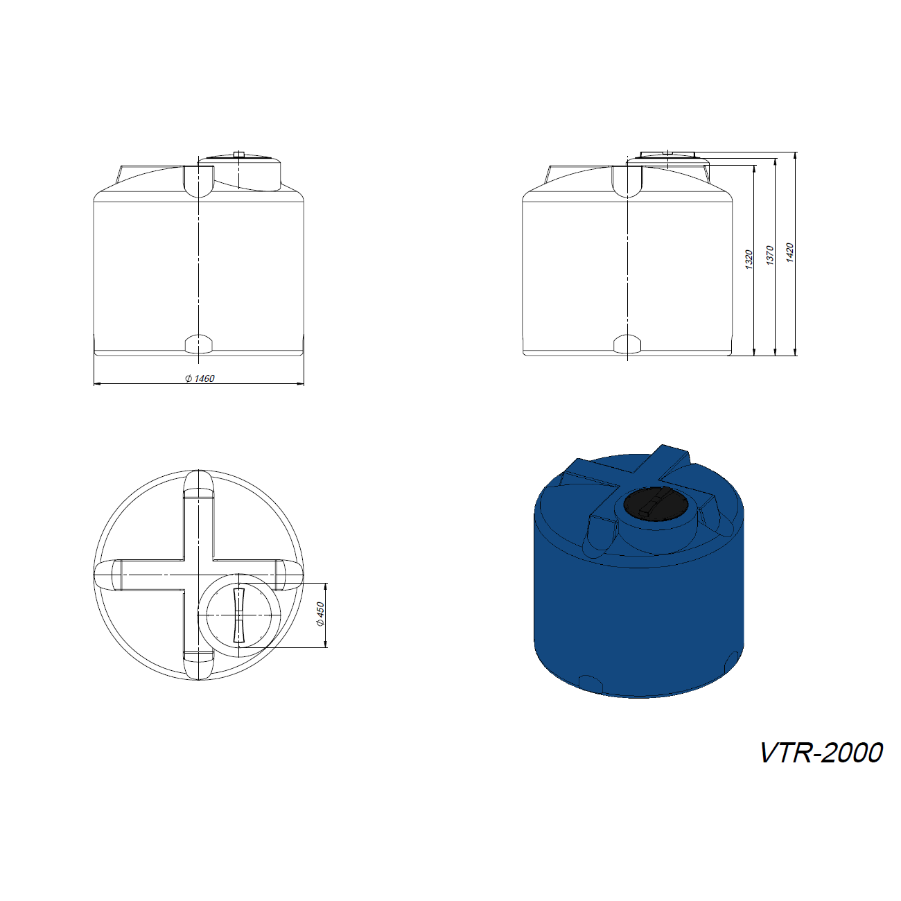 емкость, объем: 2 000 л, форма емкости: цилиндрическая, тип эксплуатации: наземная, расположение: вертикальное, диаметр горловины: 45 см, материал: полиэтилен