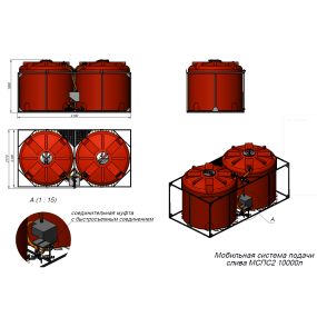 мобильная система подачи и слива, объем: 10 000 л, тип эксплуатации: наземная, расположение: вертикальное, диаметр горловины: 45 см