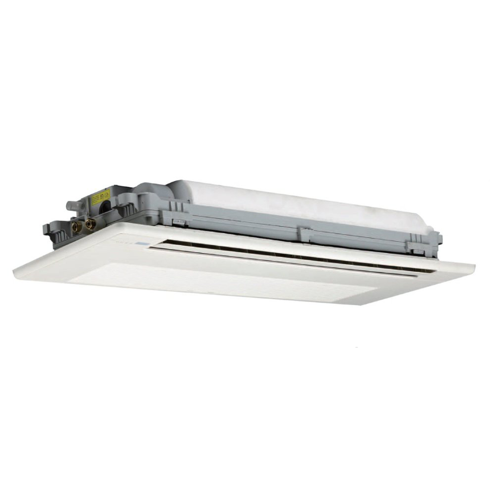 Все фанкойлы специально разработаны для встраивания в подвесной потолок.@ Корпус выполнен из оцинкованной листовой стали и имеет полиэтиленовую тепло- и звукоизоляцию.@ Лицевая панель с уникальной однопоточной раздачей воздуха обеспечивает гибкость монтажа и эффективный нагрев или охлаждение воздуха в помещениях со сложной геометрией.@ Центробежный вентилятор с очень низким уровнем шума и необслуживаемыми шарикоподшипниками.@ Малошумный вентилятор с необслуживаемыми шарикоподшипниками специально сконструирован для создания плавного и равномерного воздушного потока.@ Теплообменник изготовлен из цельнотянутых медных труб с алюминиевым оребрением, отличающимся аэродинамическим профилем.@ Имеется легко извлекаемый моющийся фильтр из синтетического материала.@ Встроенный в блок центробежный насос с поплавковым клапаном с повышенным напором до 750 мм входит в стандартную комплектацию.@ В стандартной комплектации кассетные фанкойлы оборудованы платой управления и беспроводным ИК-пультом с широкими возможностями регулирования — 5 режимов работы, таймер, функция сна и многие другие.