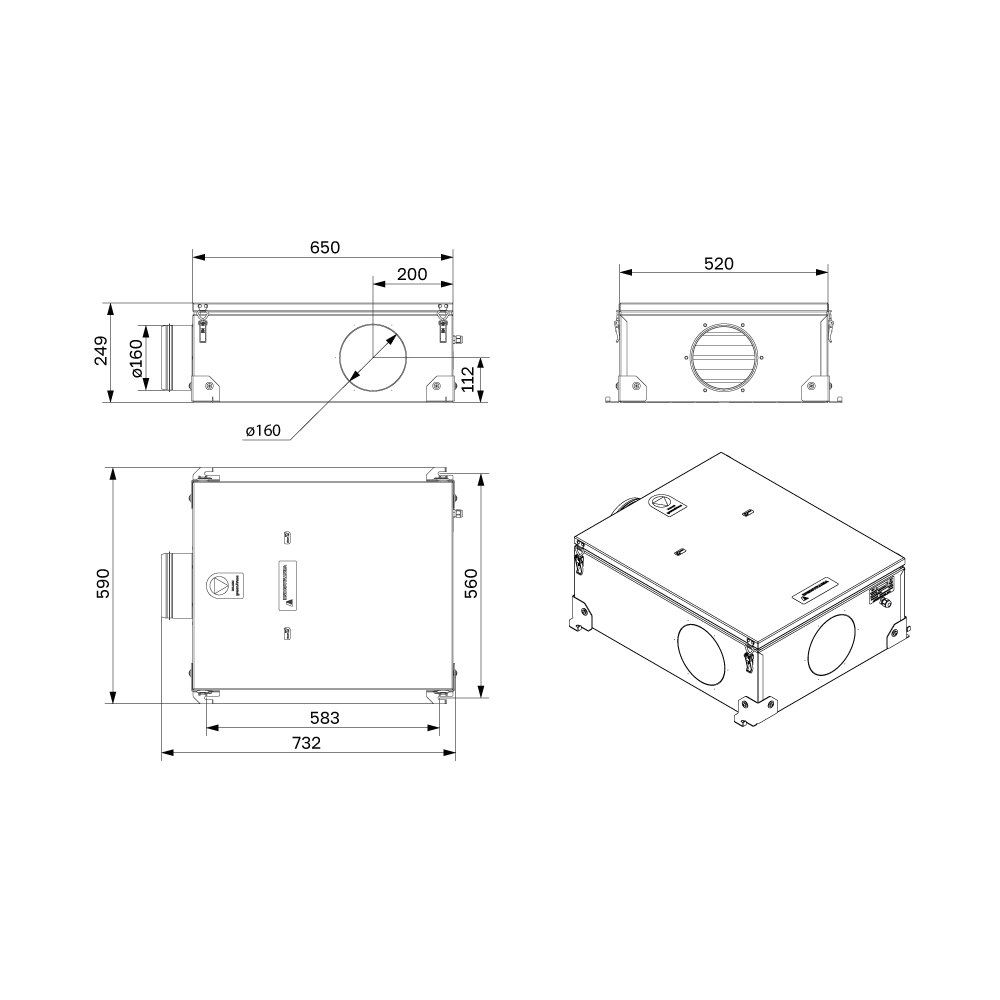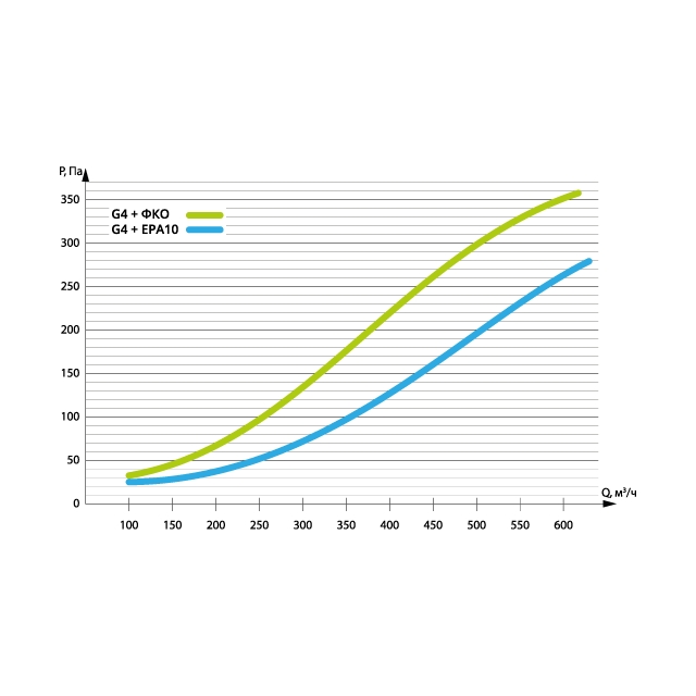 канальный, универсальный способ установки, воздухообмен 500 м3/ч, пылевой (EU4) и EPA E10 / 2 шт., класс защиты IP44