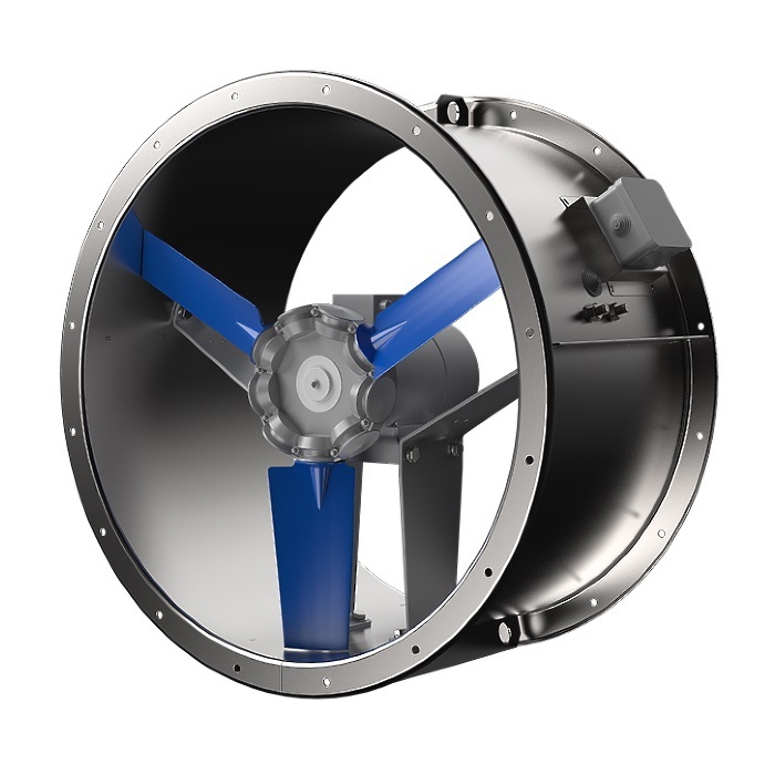осевой вентилятор, максимальный расход воздуха 38 600 куб. м/ч, частота вращения 1 500 1/мин, максимальный располагаемый напор 348 Па, присоединительный размер 900 мм, материал корпуса: сталь, монтаж: в воздуховод, степень защиты: IPX4