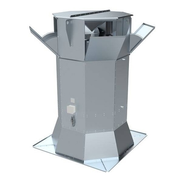 вентилятор для дымоудаления, максимальный расход воздуха 31 000 куб. м/ч, максимальный располагаемый напор 1 220 Па, шумоизоляция, взрывозащищенный, степень защиты: IP54, класс изоляции: F, количество фаз: 3, присоединительный диаметр 800 мм, выброс воздуха: вертикальный, тип подключения воздуховода: круглый