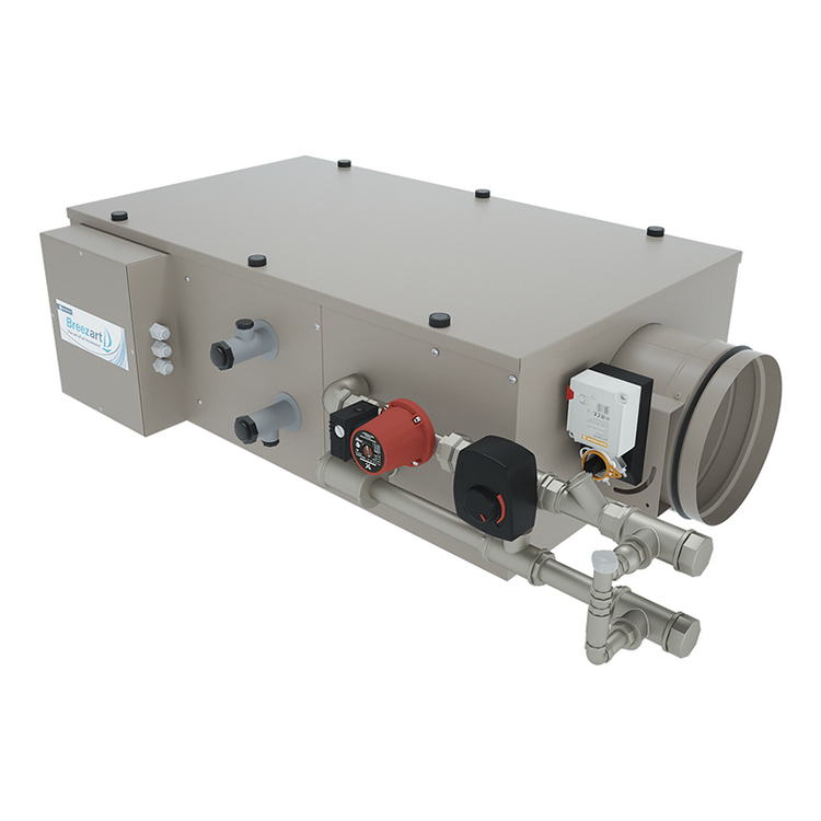 приточная установка, тип нагревателя: водяной, тип вентилятора: EC, максимальная потребляемая мощность: 200 Вт, воздухообмен 1 000 куб. м/час