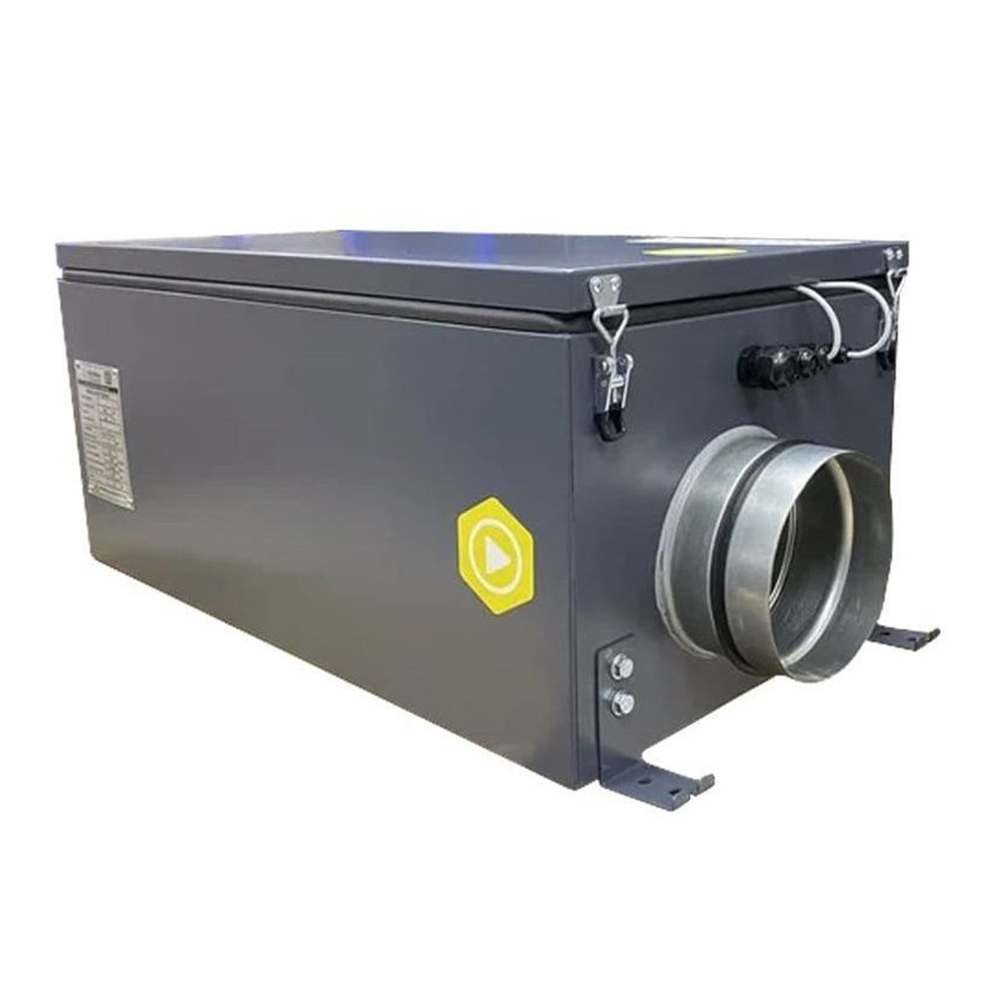 приточная установка, гарантийный срок 2, тип нагревателя электрический, напряжение 220, фильтр грубой очистки G4, класс защиты IP55, максимальный уровень шума 27 дБ