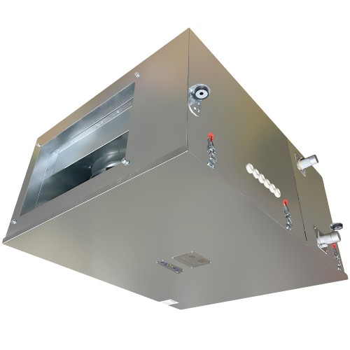 приточная, пульт дистанционного управления, тип нагревателя: водяной, тип вентилятора: EC, фильтр грубой очистки: G4, установка: подвесная, класс защиты: IP50, мощность нагревателя: 19800 Вт, мощность вентилятора 230 Вт, Wi-Fi, воздухообмен 1 384 куб. м/час, корпус: бескаркасный 50 мм, максимальный напор 1 100 Па, количество скоростей 7, материал рабочего колеса пластик, подключение 500x300 мм, площадь помещения 520 кв. м, рабочее колесо: радиальное мотор-колесо КНР, управление фреоновым охладителем