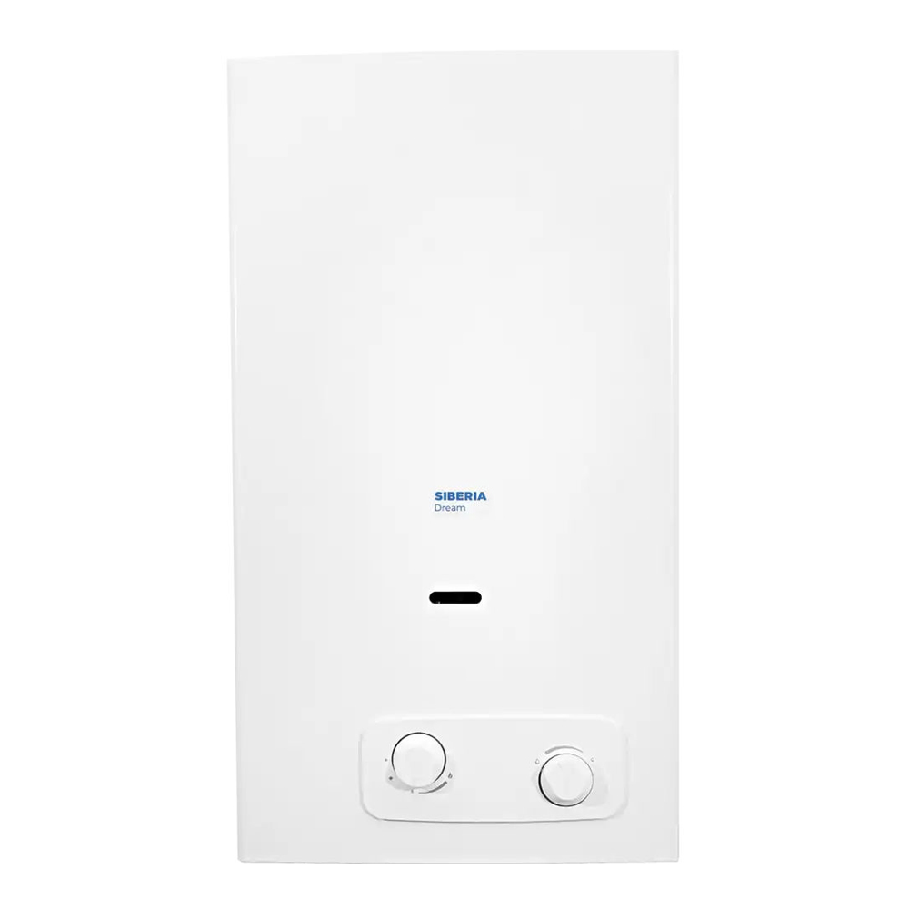 тип водонагревателя: проточный газовый, максимальная температура воды +75 °С, мощность 21.8 кВт, механическое управление, системы защиты: от перегрева, от включения без воды, датчик тяги, термостат, предохранительный клапан, тип камеры сгорания: открытый, установка: вертикальная, нижняя подводка, способ крепления: настенный